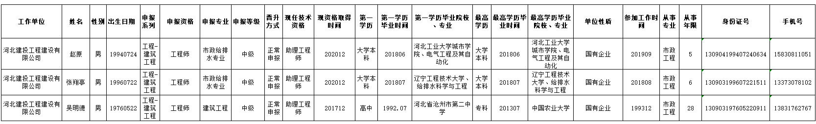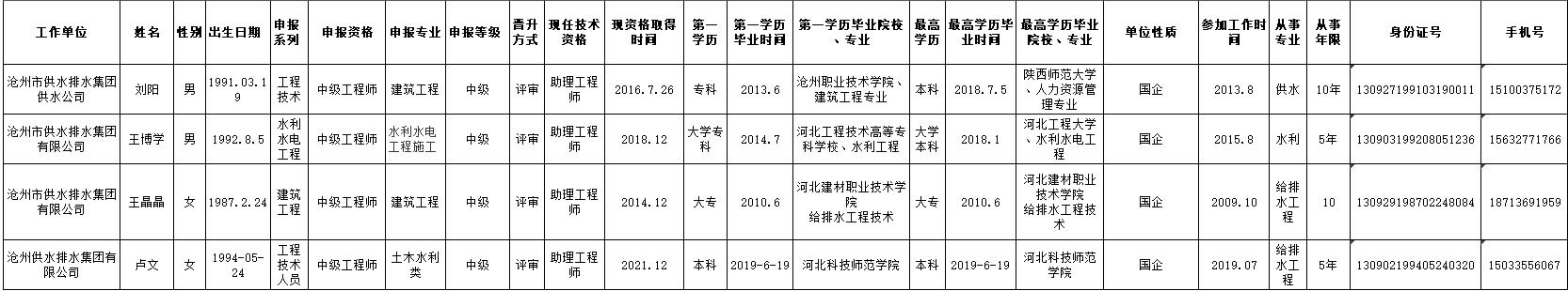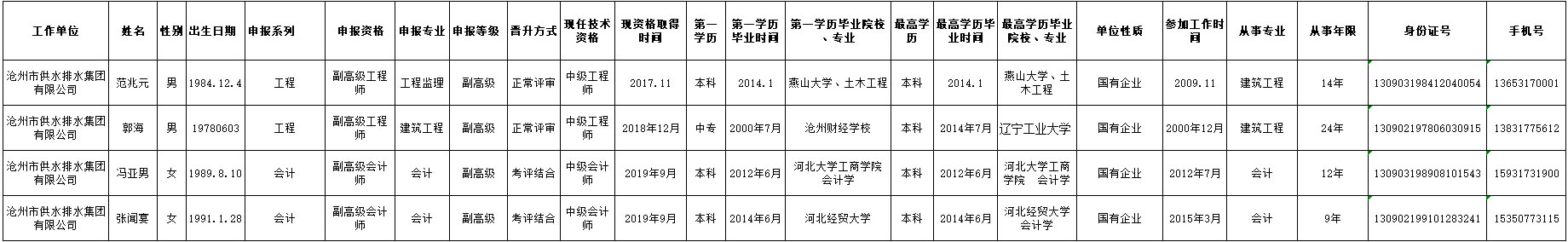 2020年供排水集團(tuán)申報(bào)職稱人員公示表
